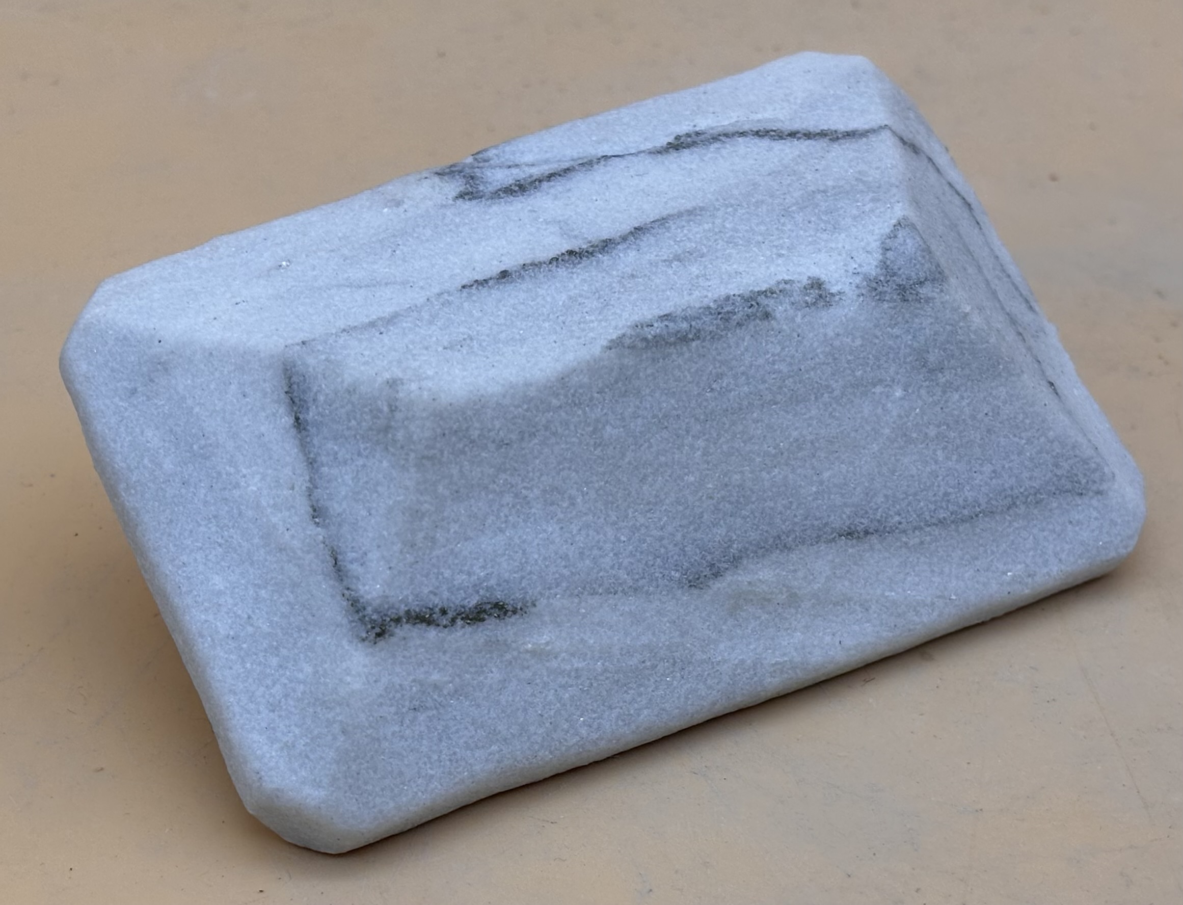 Anatas Kristall Modell aus Walliser Goldmarmor aus dem Binntal, Oberfläche jetgestrahlt, Schweizer Handarbeit