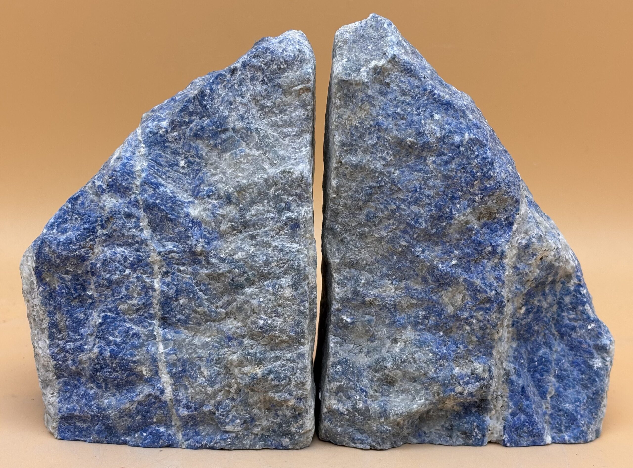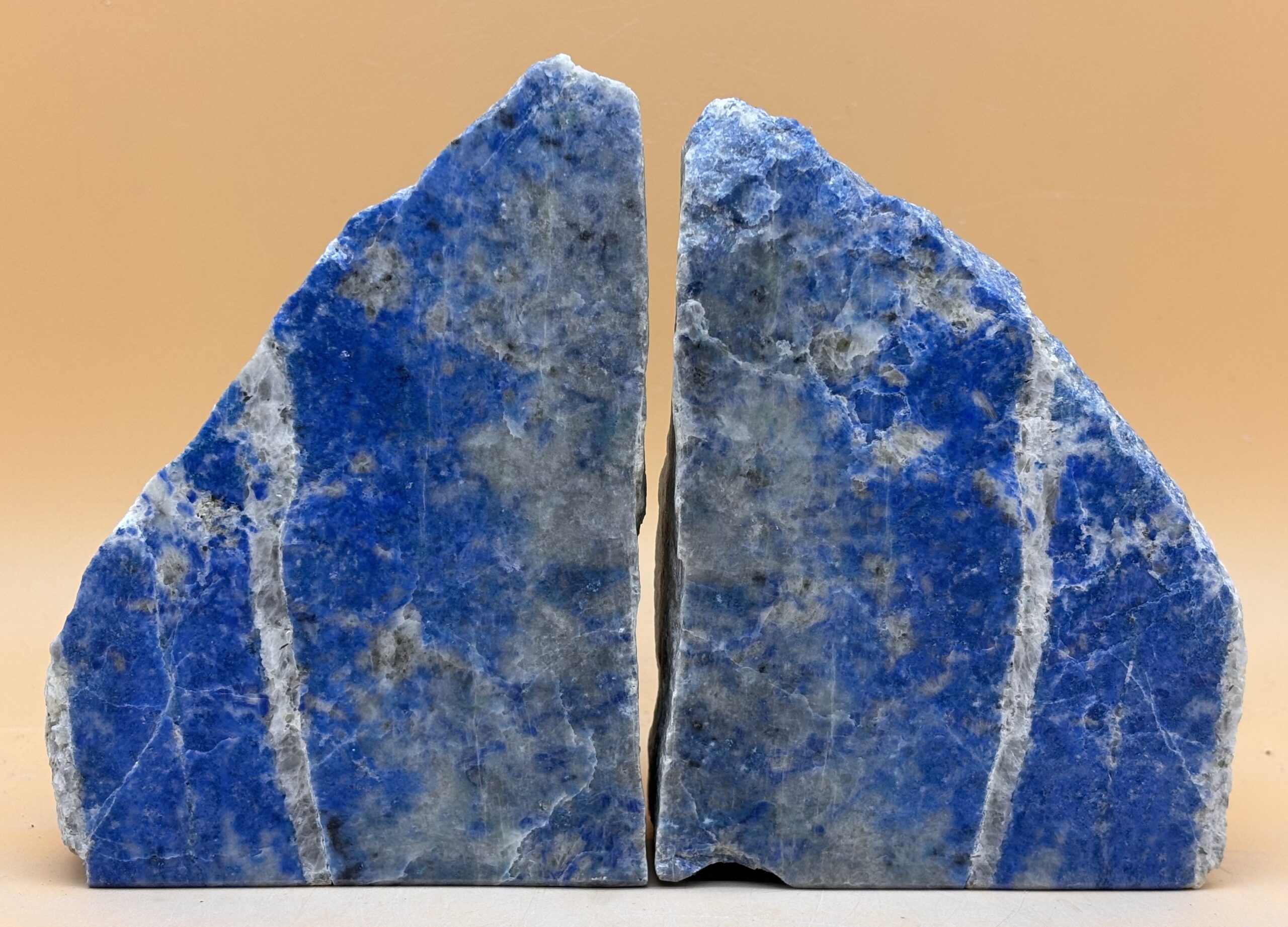 aus Afghanischem Lapislazuli hergestellte Buchstützen, Vorderseite poliert, Seiten und Rückseite Natur, mit Standfläche, Hergestellt in Bayern