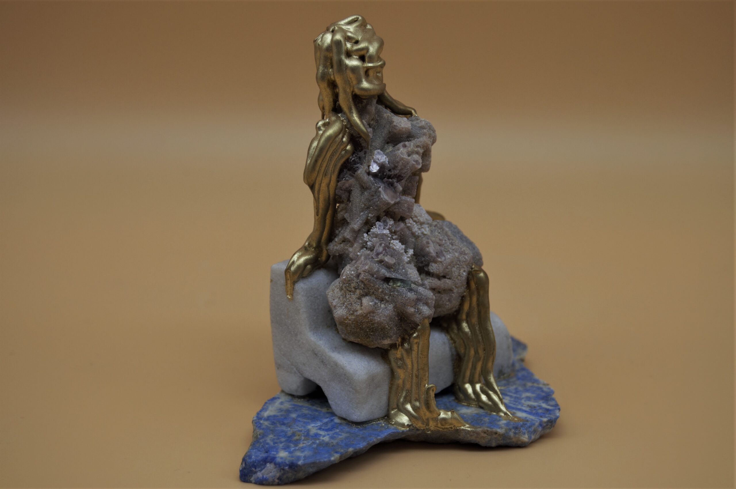 sitzende Christl, Objekt aus grünem Turmalin, lapislazuli, Walliser Goldmarmor und M-vergoldetem Harz