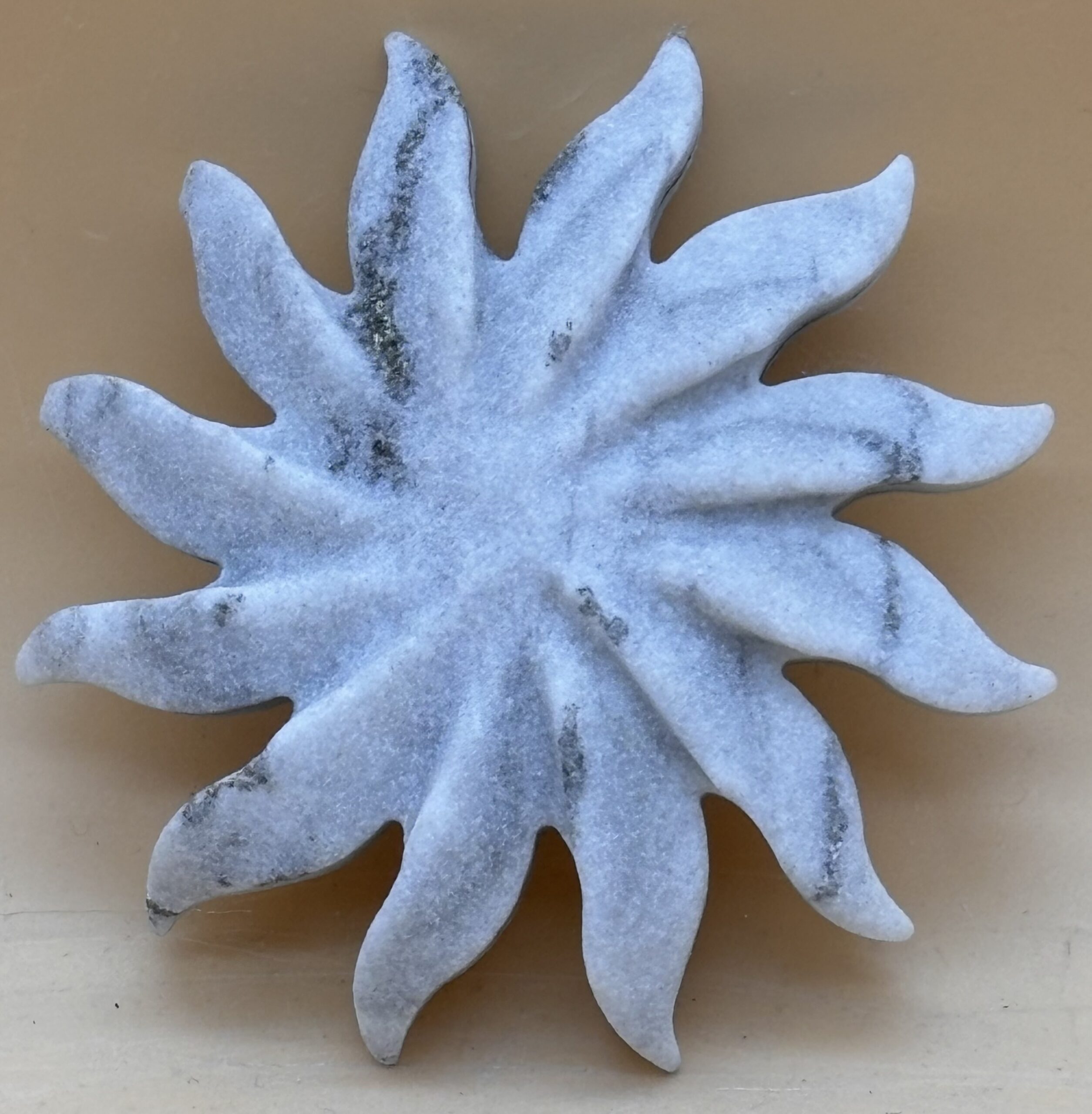 Goldmarmor Sonne aus feinem Dolomitmarmor des Binntal / Wallis / Schweiz, Oberfläche jetgestrahlt, Schweizer Handarbeit