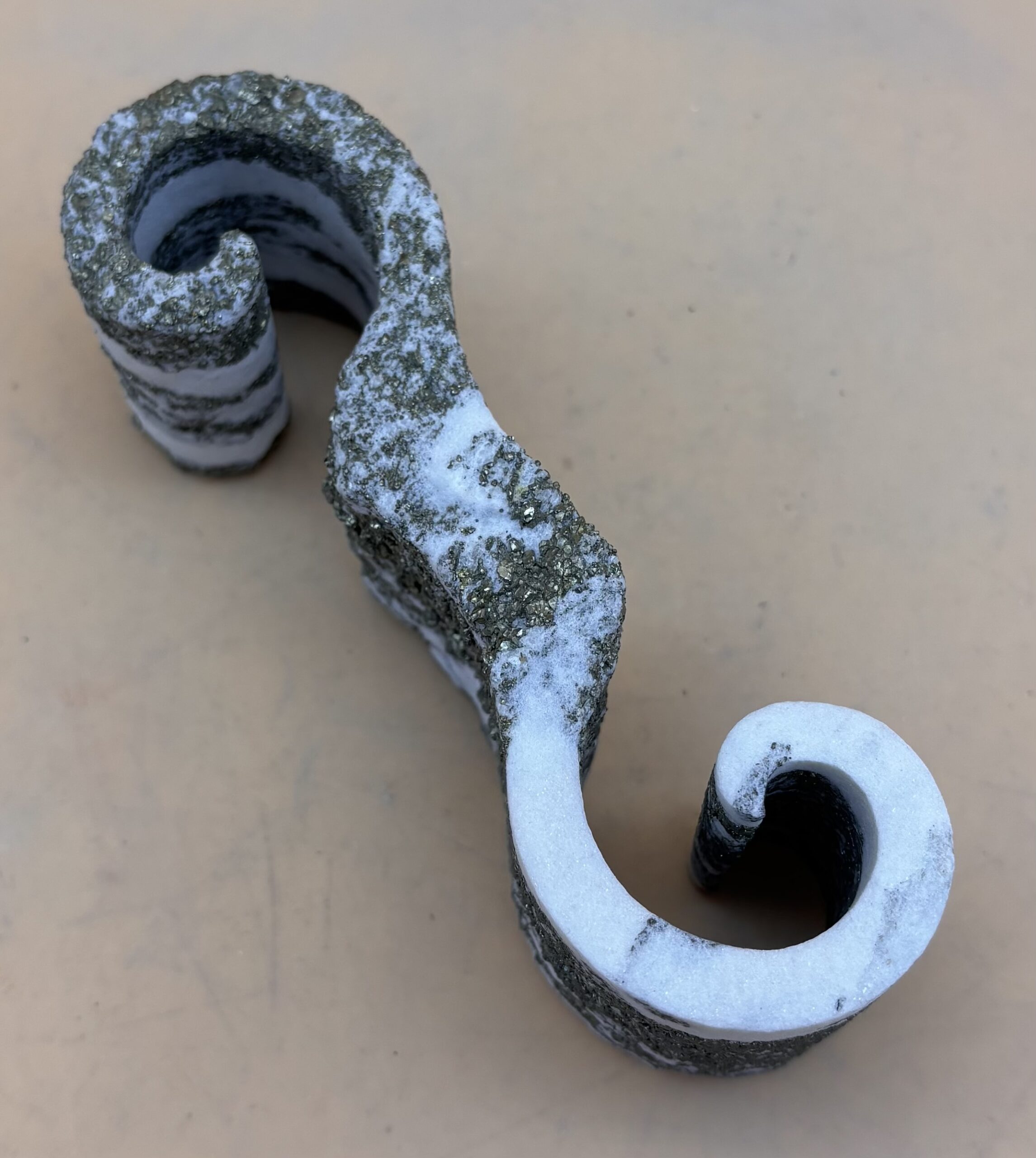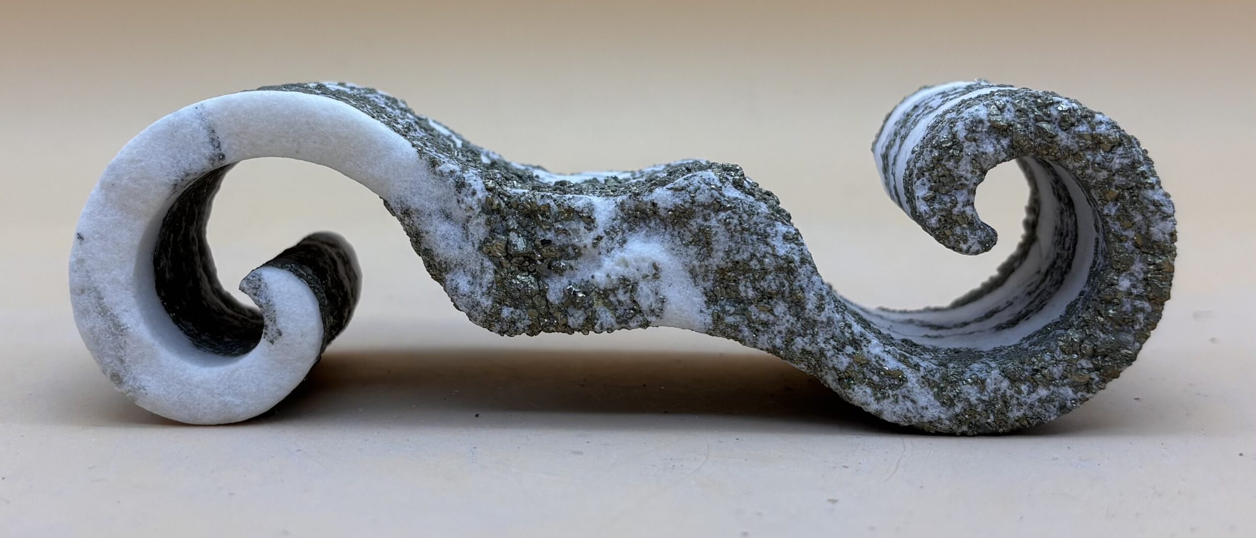 filigrane Walliser Goldmarmor Volute, Wasserstrahl-geschnitten und jetgestrahlt, Schweizer Handarbeit