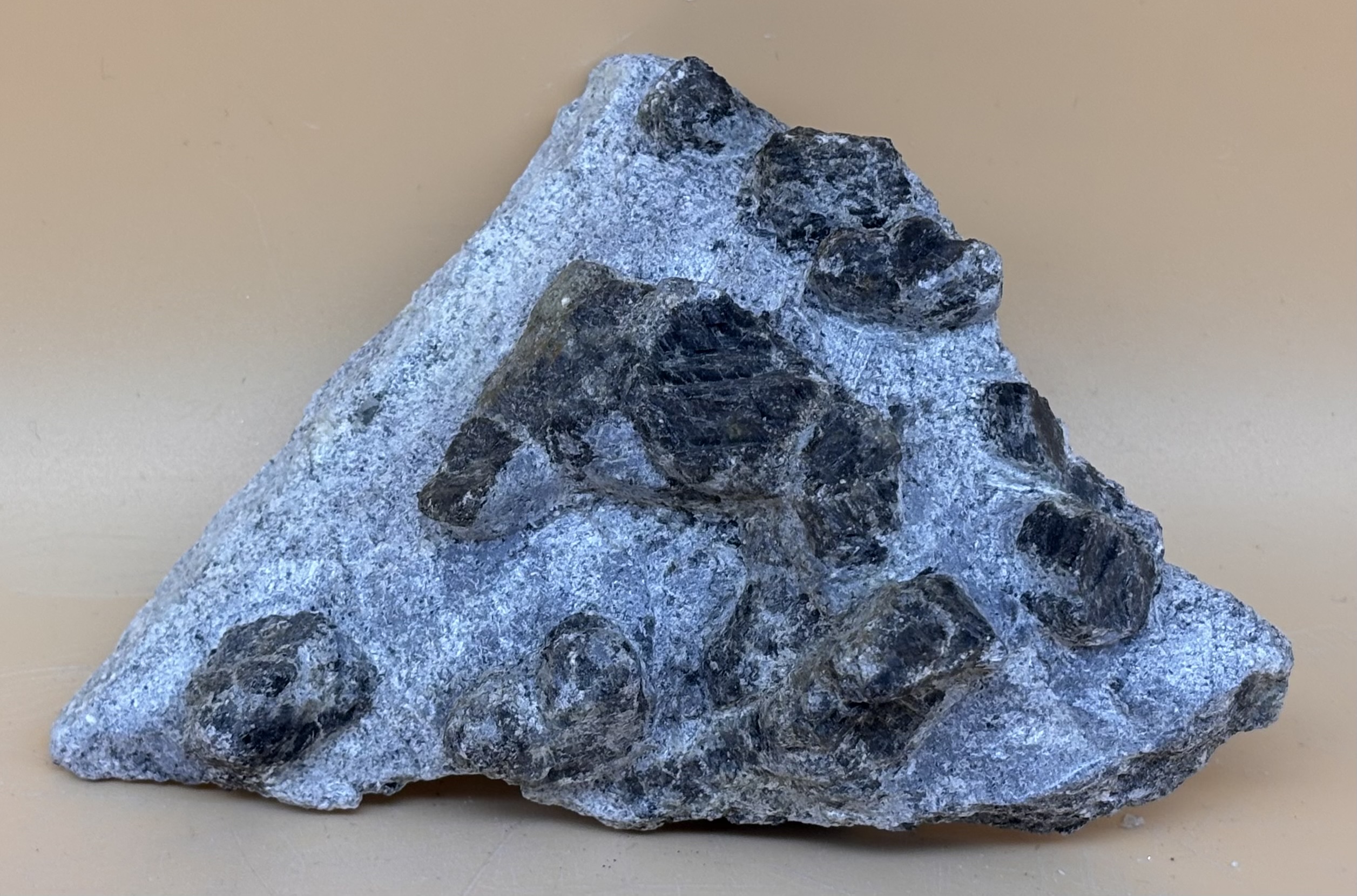 Granat in Glimmerschiefer und Magnesit, aus alter Mineraliensammlung, Herkunft Österreich Kärnten, Granate ausgearbeitet