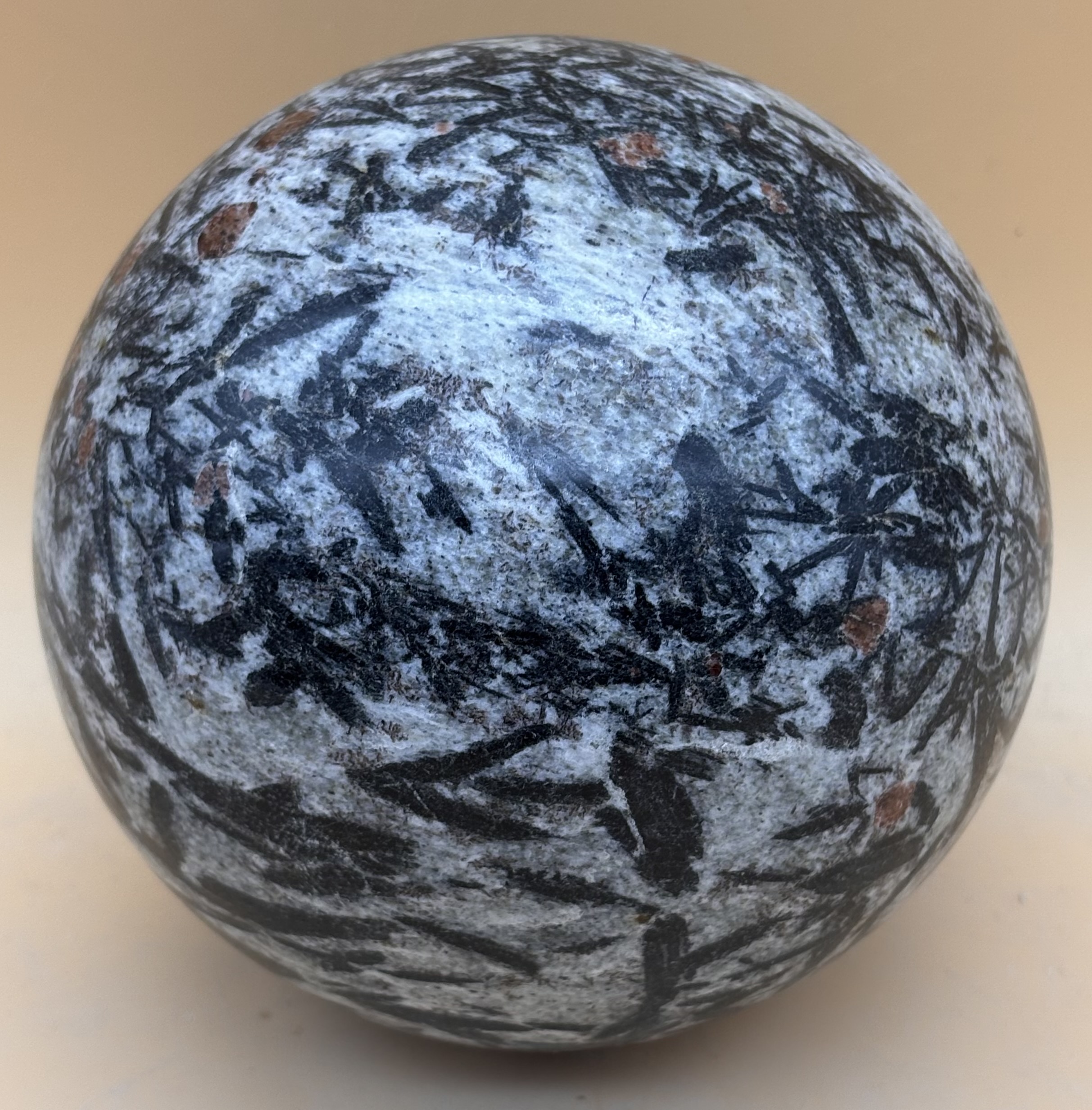 Walliser Hornblende-Granat-Schiefer Kugel, Oberfläche poliert, Fundort Rohstein Turben-Alp Binntal Wallis Schweiz