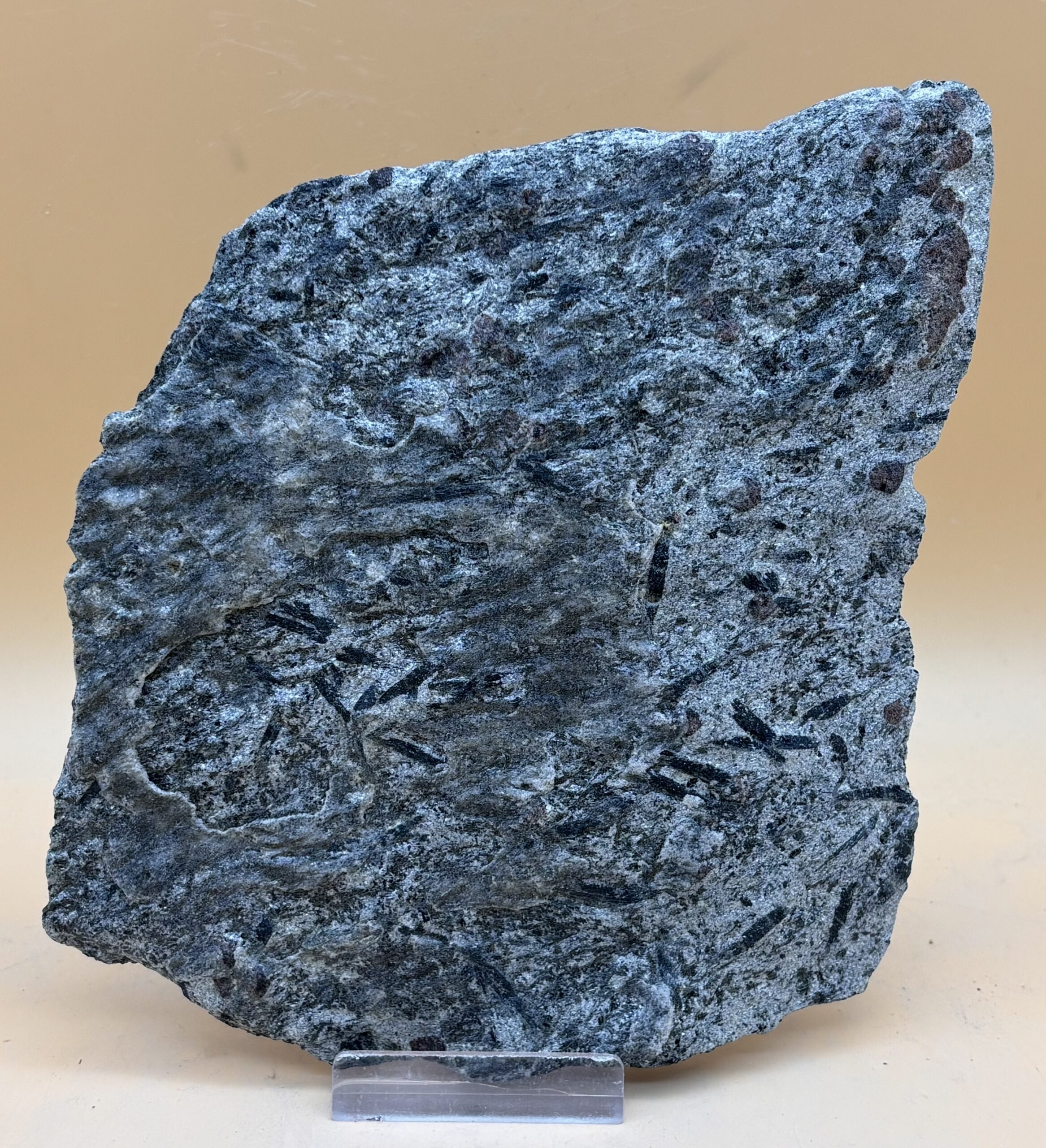 Walliser Hornblende Granat Schiefer, polierte Platte, Rückseite Natur, Fundort :  Rohstein ,Turbeweng Binntal,