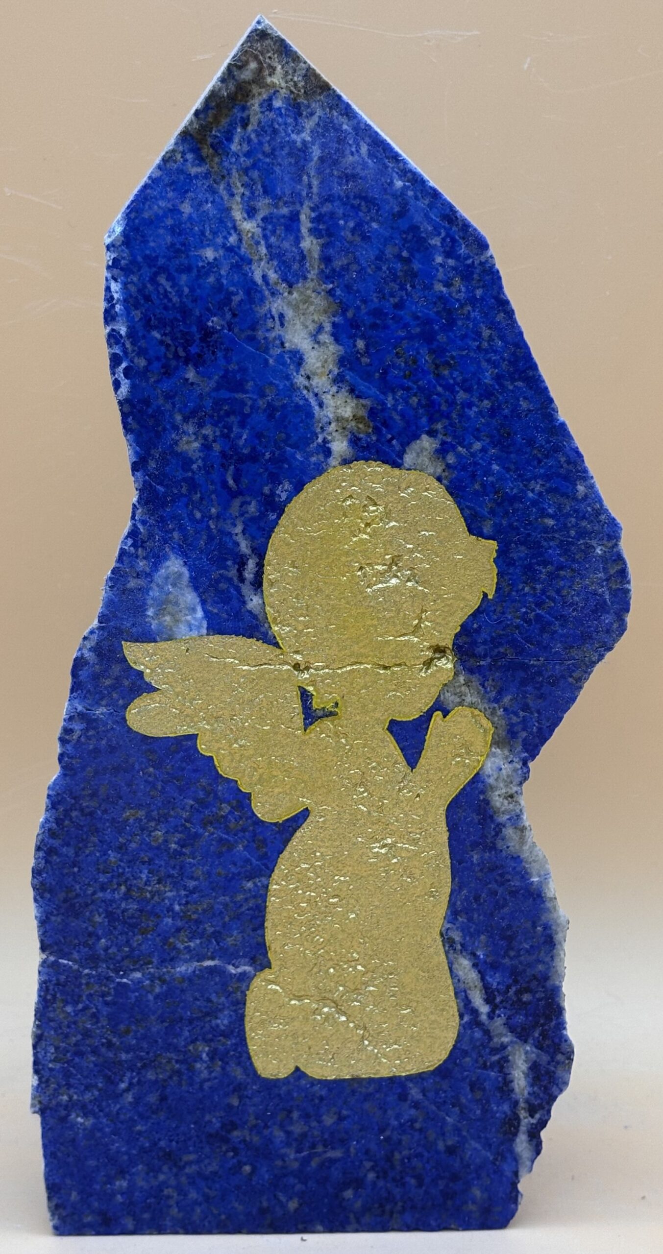 Engel Gravur in Afghanischem Lapislazuli, M-vergoldet, Oberfläche poliert, Seiten Natur
