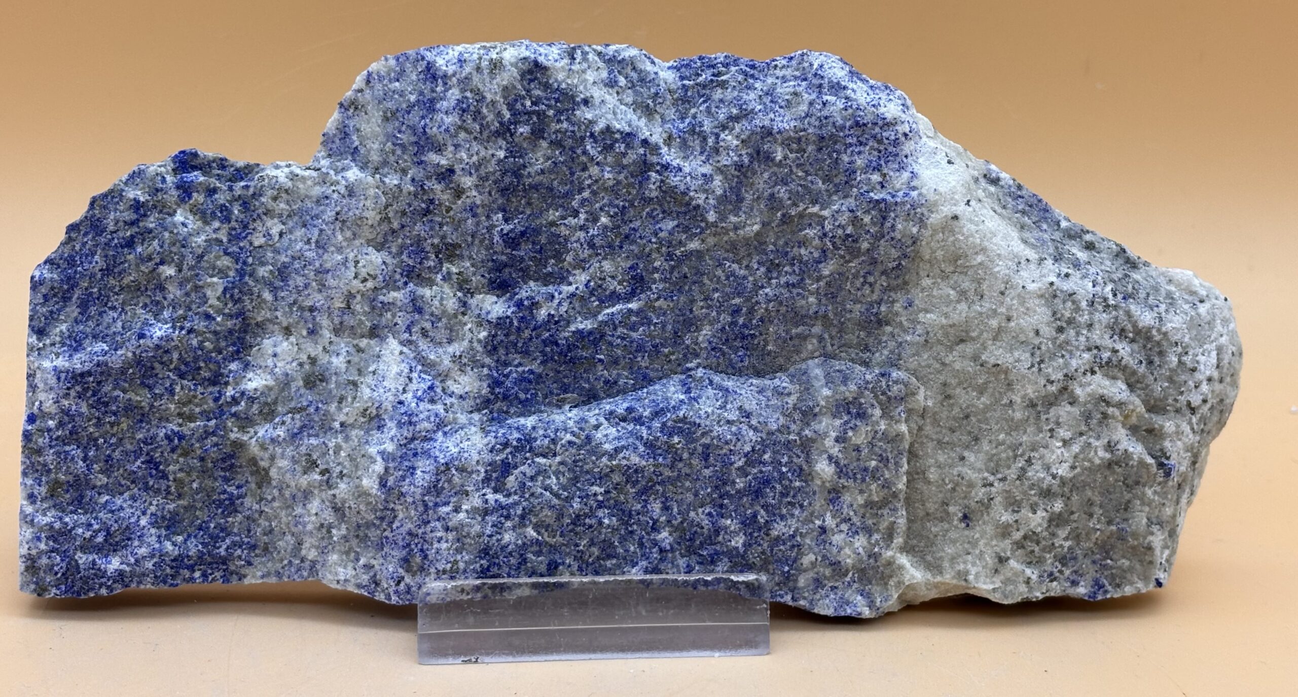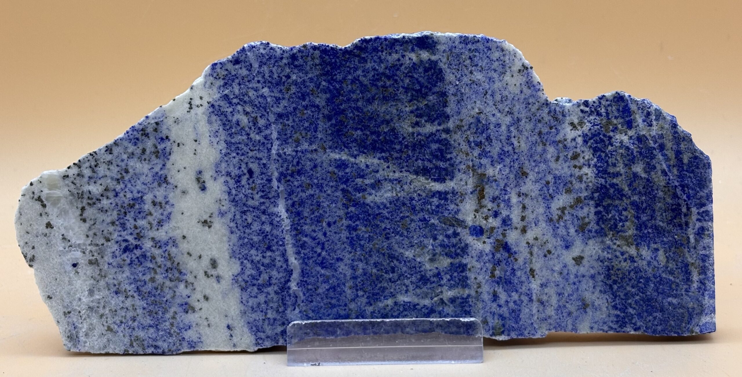 Afghanischer Lapislazuli Rohstein-Anschnitt, Schnittfläche poliert, Rückseite Natur