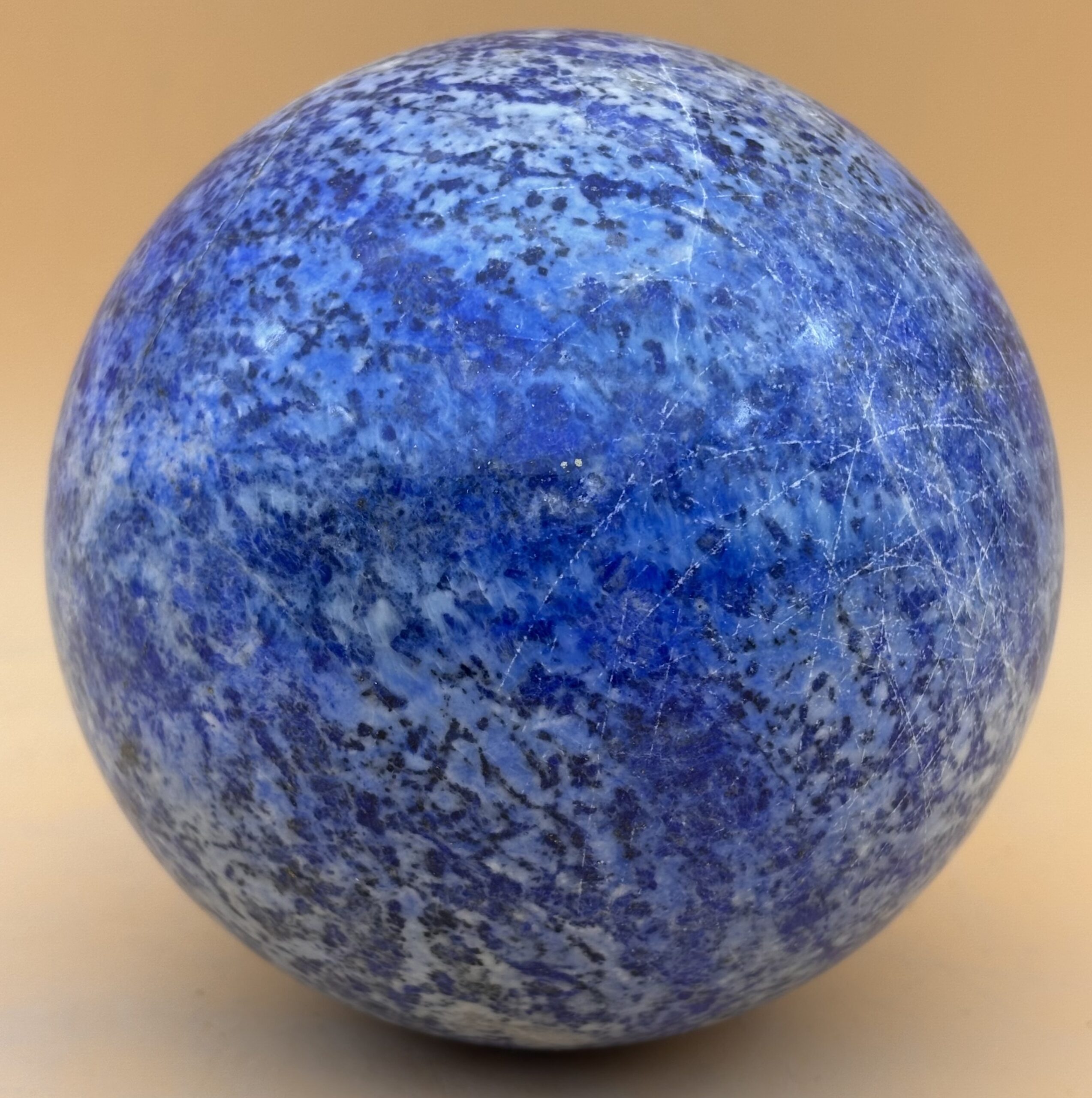 Afghanischer Lapislazuli, polierte Kugel, Türkisblau gesprenkelt, sehr interessante Struktur