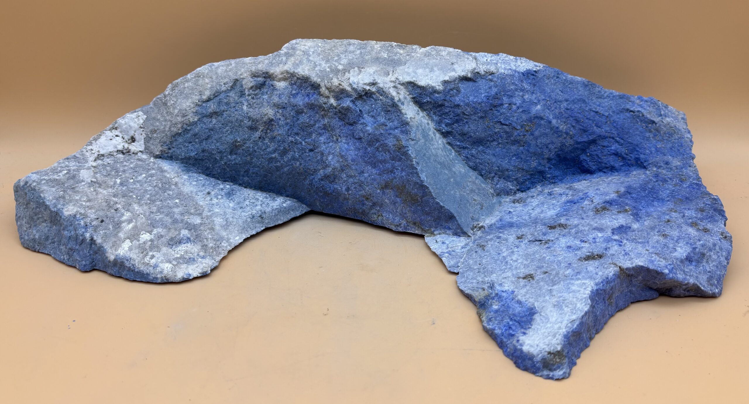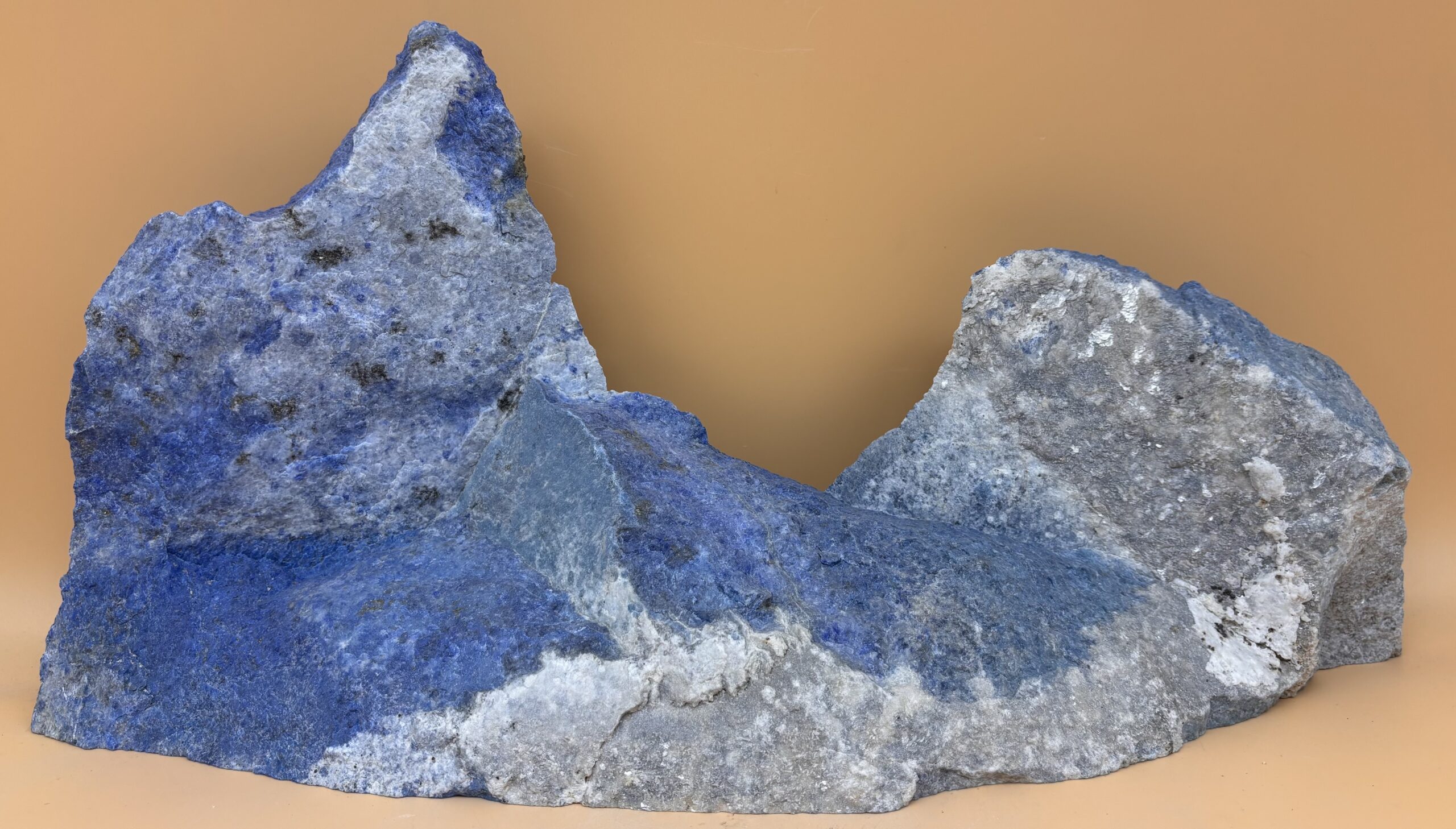 Dekorativer Blockanschnitt aus Afghanischem Lapislazuli. Eine Berg-Silhouette der besonderen Art. Als Sideboard-Aufsatz, in einem Terrarium oder Aquarium, ein Hingucker auf jedem Fall. Hergestellt in Bad Wörishofen aus Rohmaterial