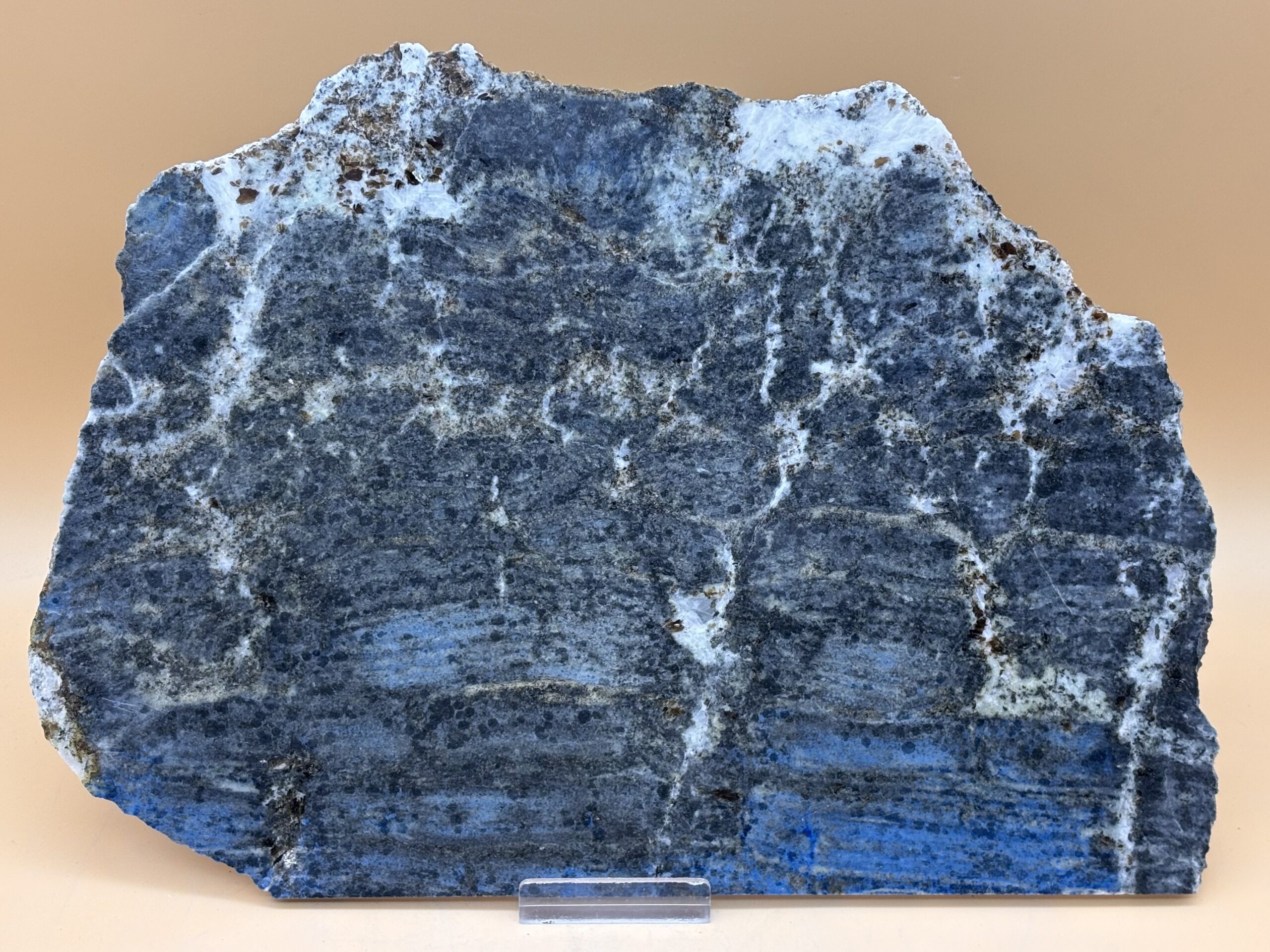 Gesteinsmischung, metamorphe mineralreiche tonige Lagen im Randbereich von hydrothermalen Quellen bilden im laufe von Jahrmillionen an tektonischen Plattenränder solche seltenen Gesteinsübergänge. Platte beidseitig poliert