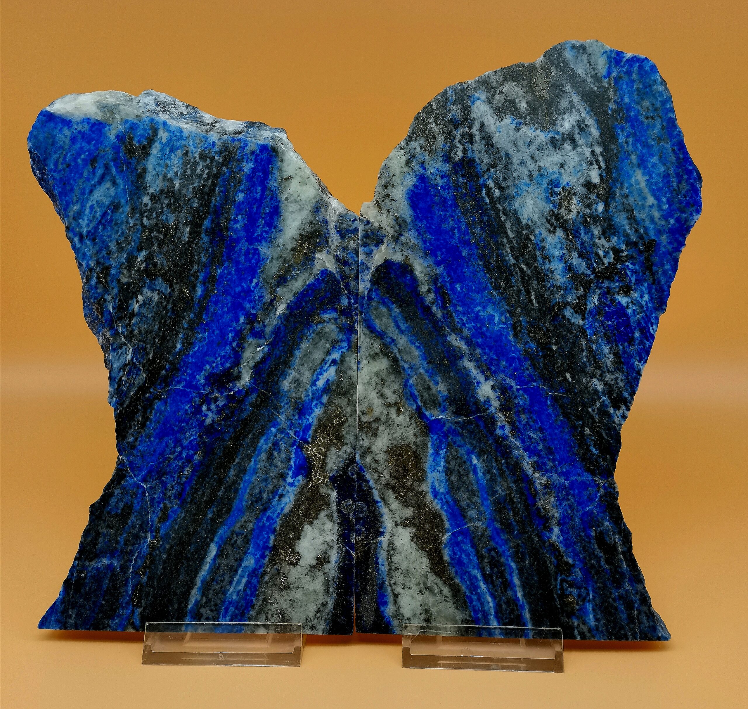 struckturreicher, gebänderter Lapislazuli-Spiegel. Platten-Spiegel beidseitig poliert, Hergestellt aus Rohmaterial in Bad Wörishofen / Bayern