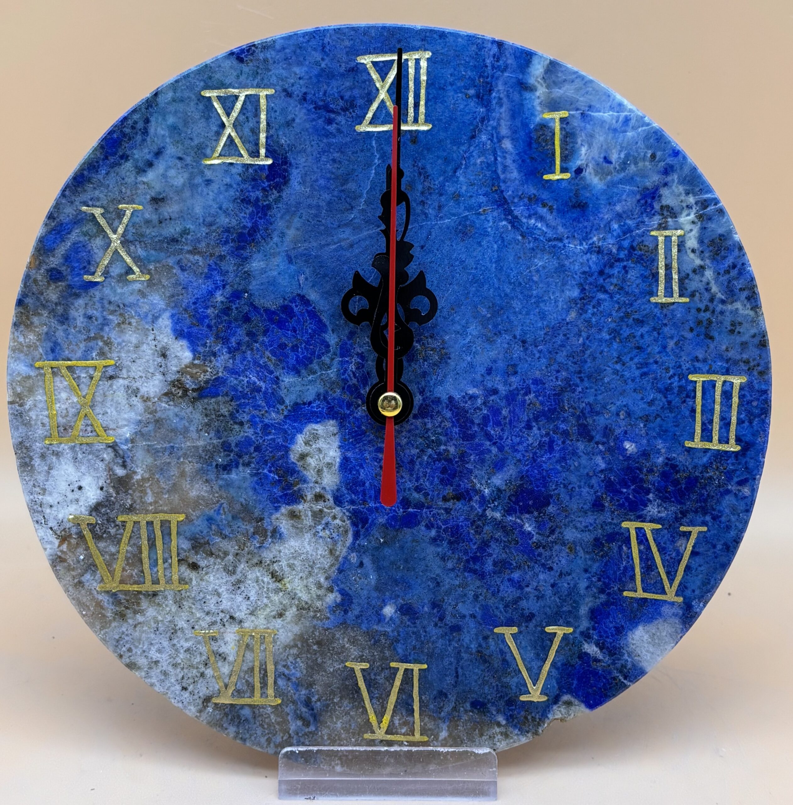 Dünnschliff-Platte, Lapislazuli, Objektdesign, Stein Accessoires, Wanduhr, Wohndesign