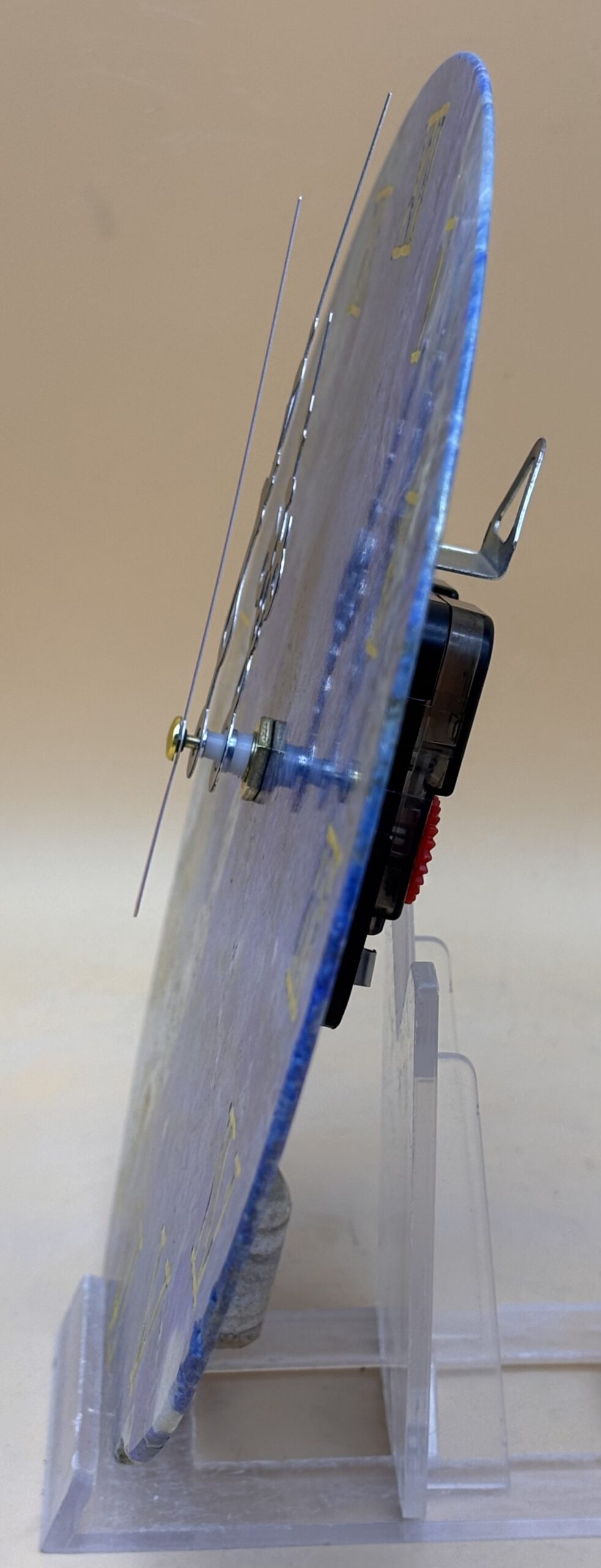Extra dünne Lapislazuli Wanduhr, 2 mm Uhrenblatt, Römische Ziffern eingefräst und mit Messingpulver veredelt. Einzelstück, Lieferung ohne Batterie