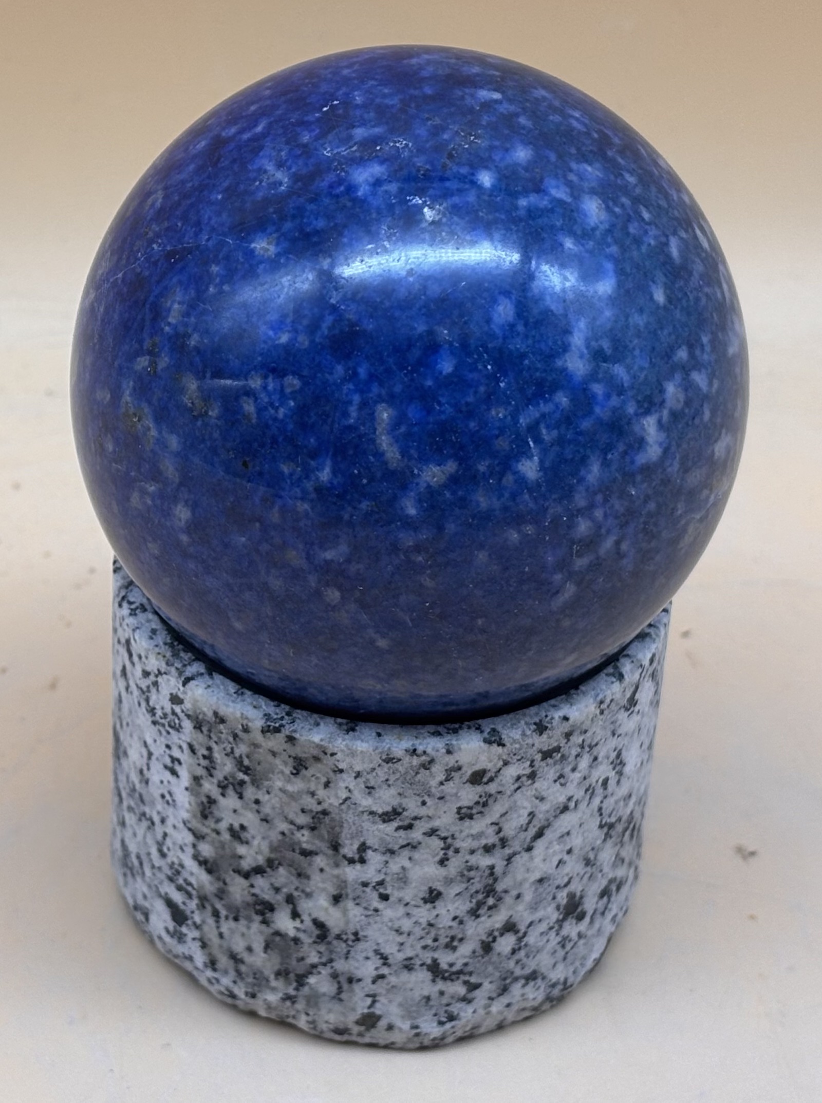 schwimmende polierte Lapislazuli Kugel für Zimmerspringbrunnen, mit Basisstein aus Granit, Hergestellt in Bayern, Lieferung ohne Pumpe