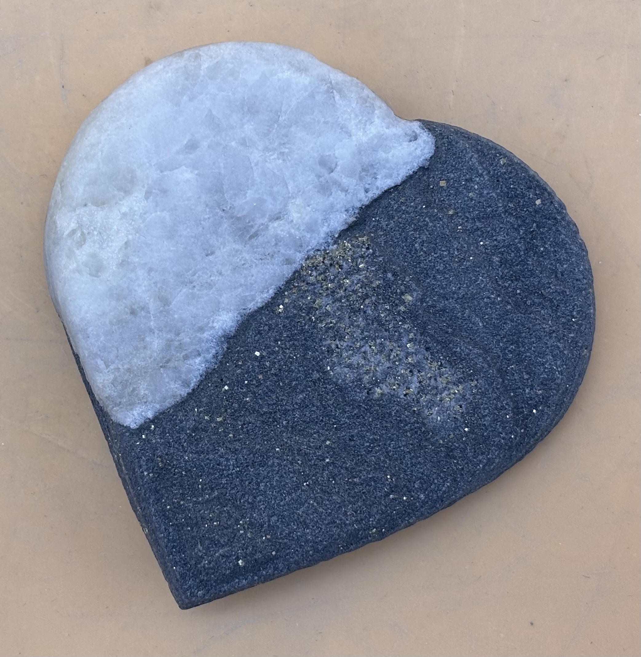 Black and White, Nolla Pyrit Schiefer Herz, Schweizer Handarbeit, Oberfläche jetgestrahlt