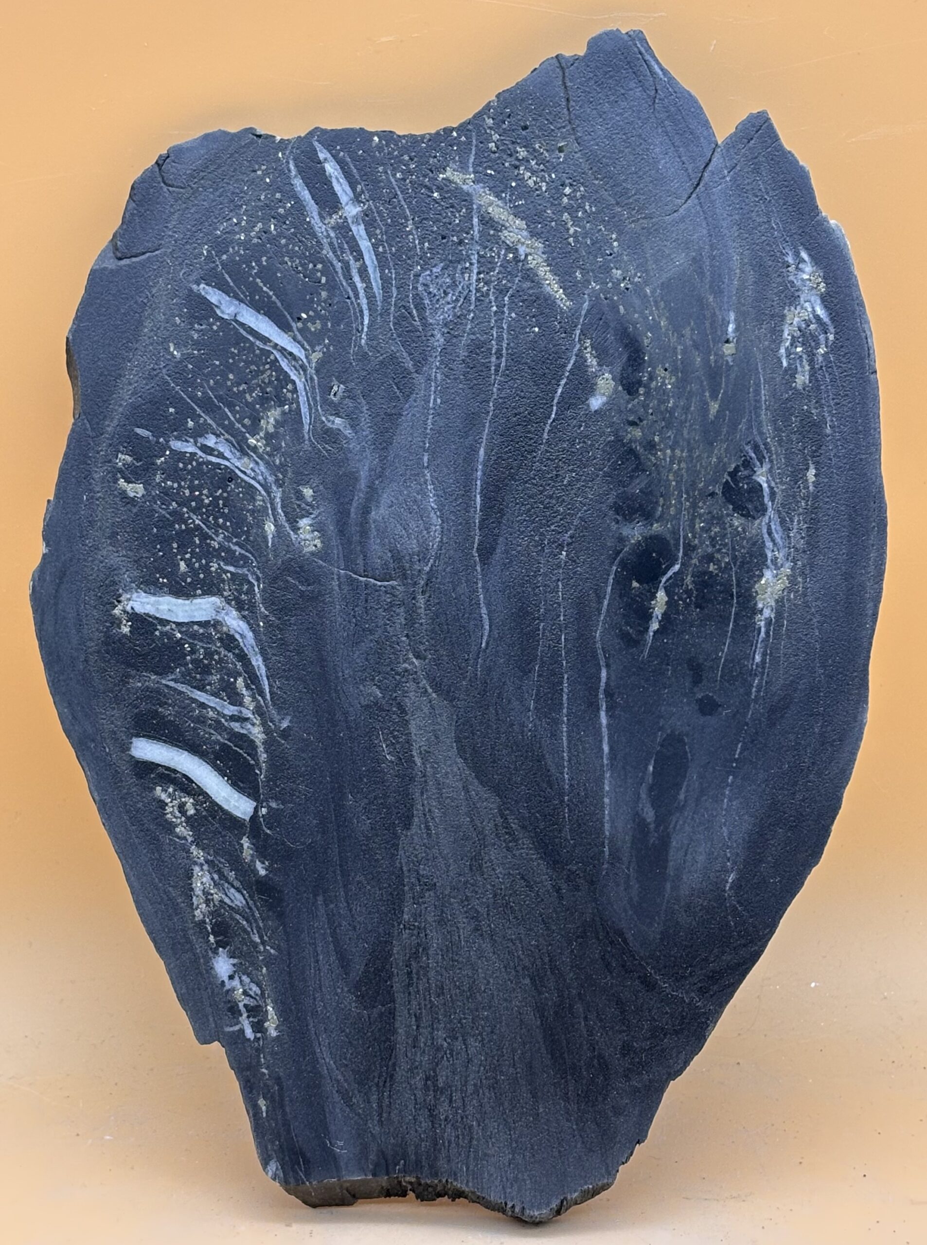 Graubündener Nolla Pyrit Schiefer aus einem Seitental des Hinterrhein, Oberfläche jetgestrahlt und eingelassen zu Struktur-hervorhebung