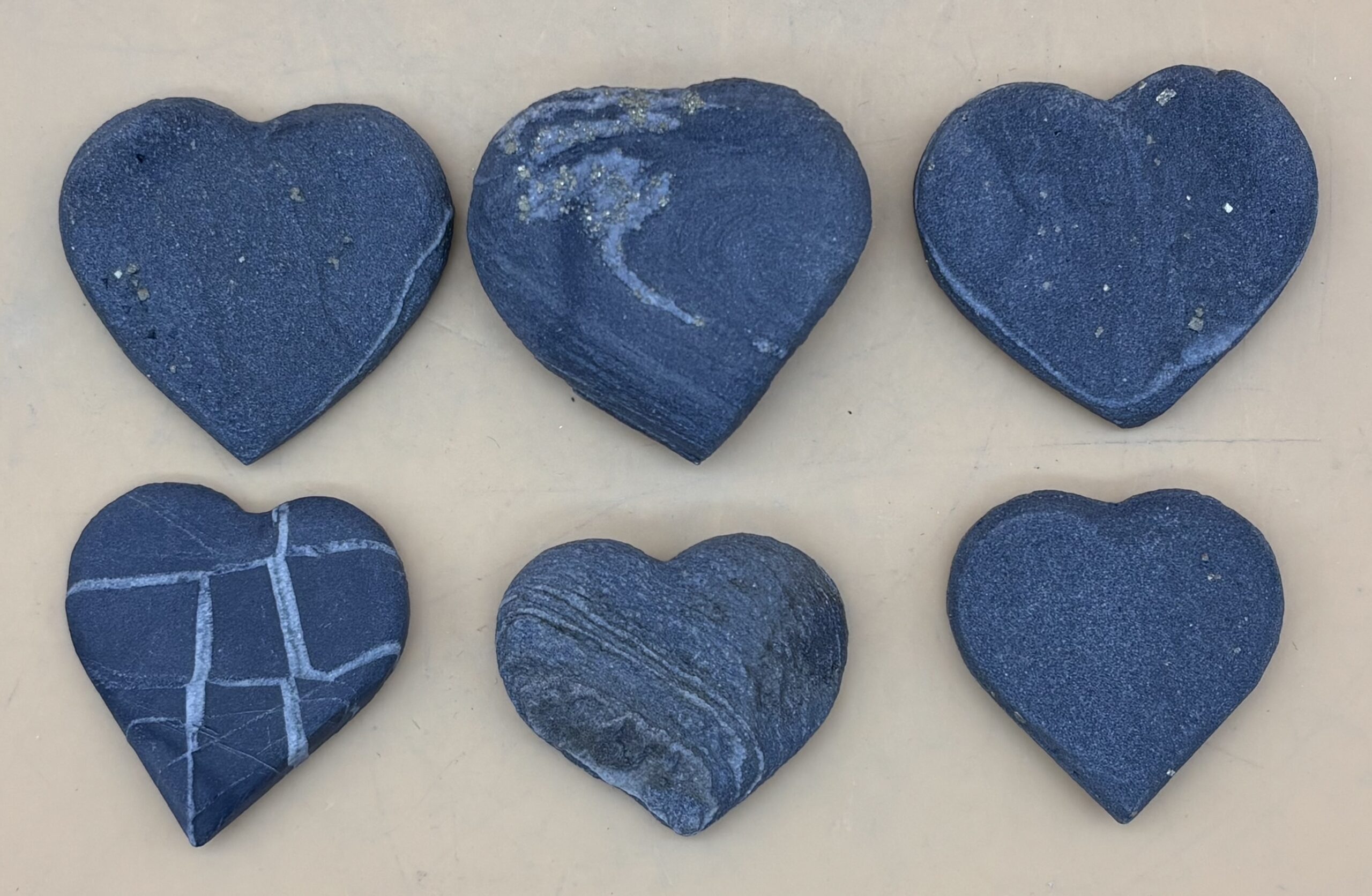 Sixpack Rheingold Schiefer Herzen, Hergestellt mit Liebe zum Stein, Schweizer Handarbeit, Oberfläche jetgestrahlt, jedes Stück ein Unikat, Rohstein Ursprung : Graubünden Schweiz
