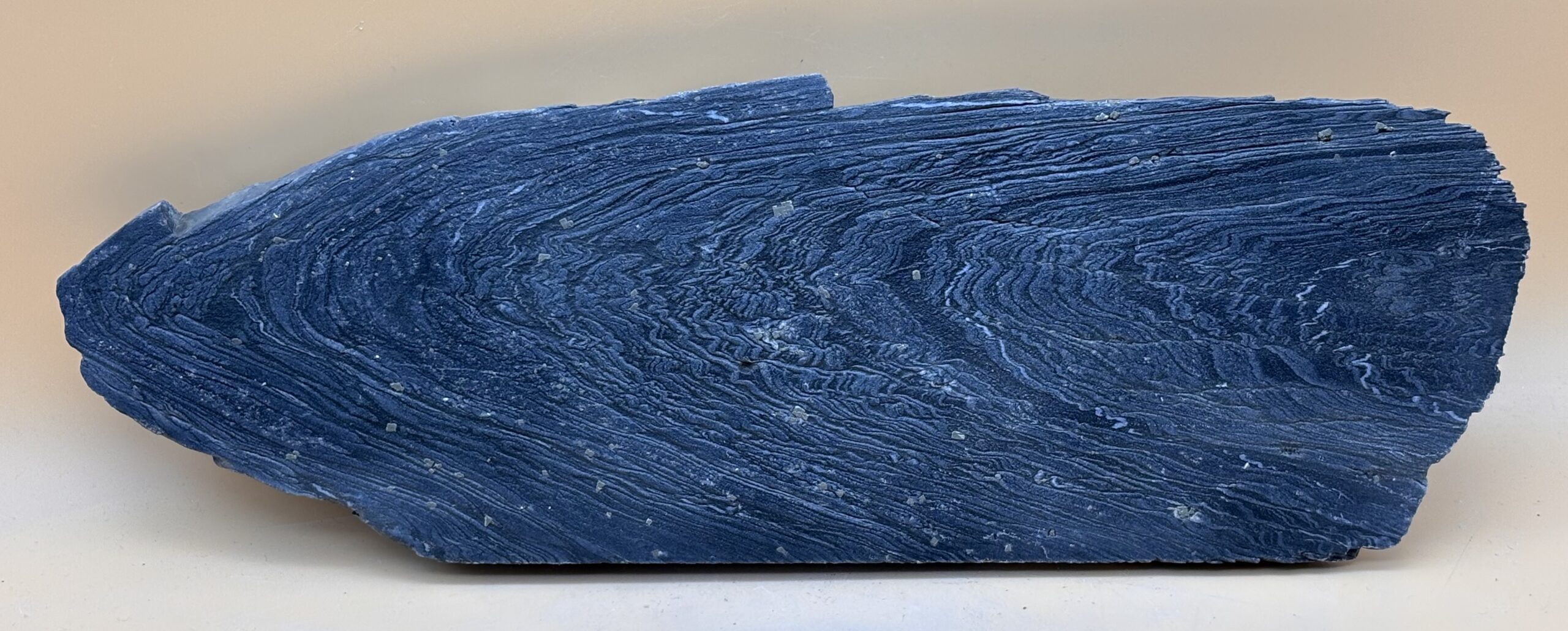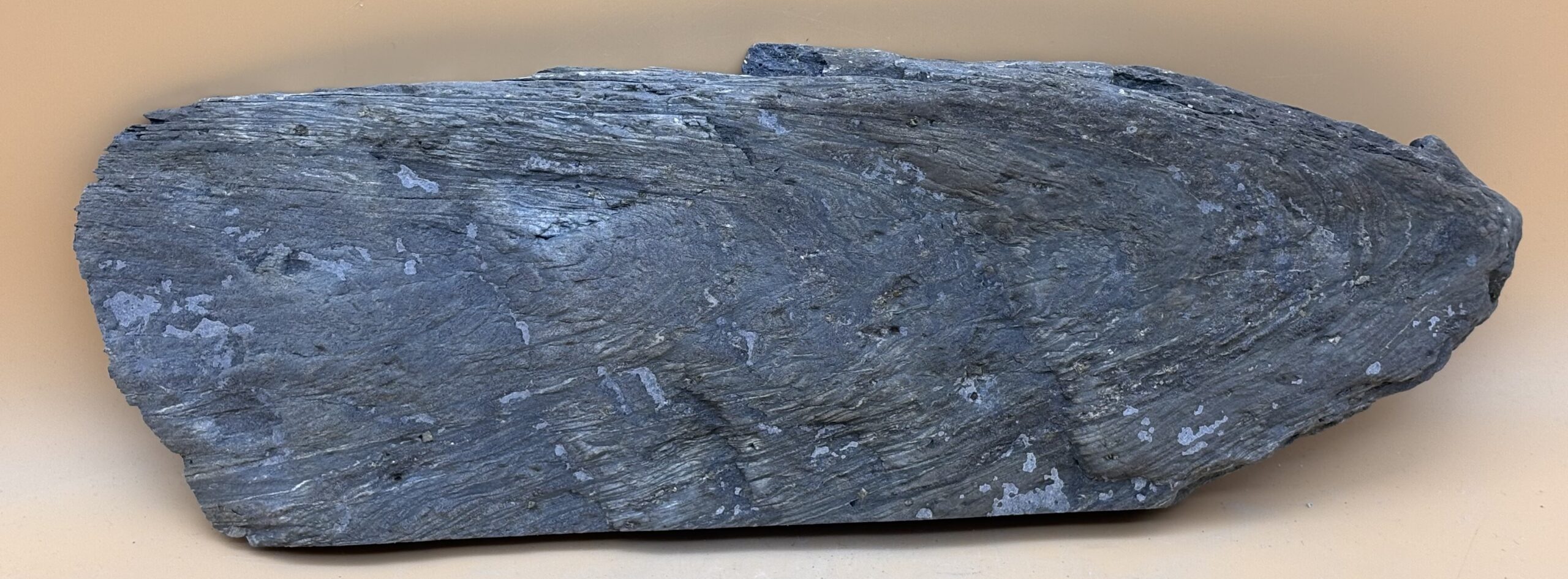 Rheingoldschiefer Anschnittplatte, Oberfläche jetgestrahlt und eingelassen, Herkunft: Hinterrhein Graubünden Schweiz