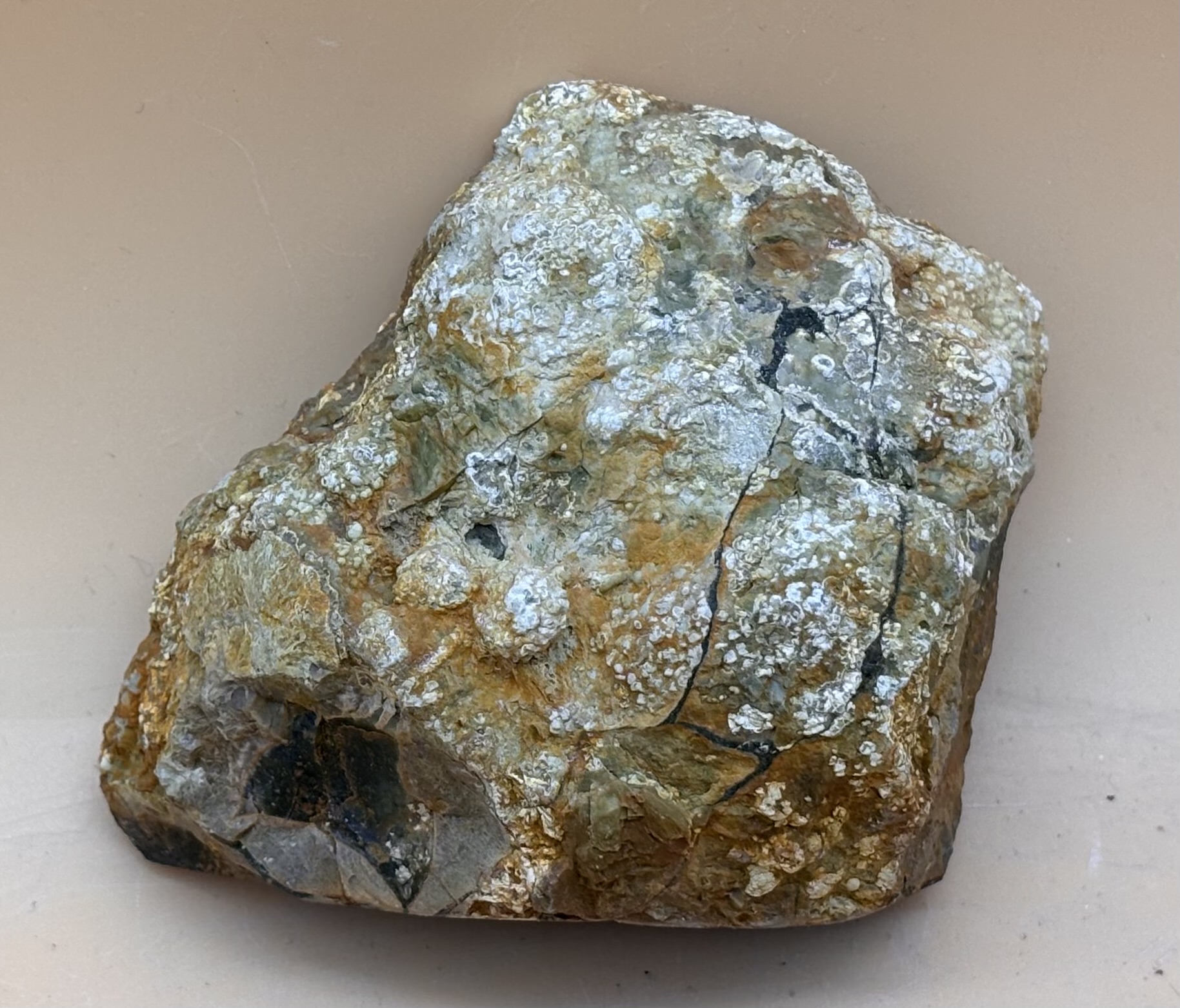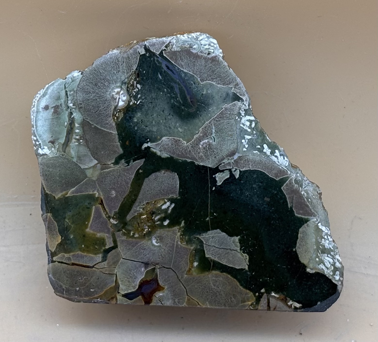 Australischer Rhyolith vom Mt. Hay Queensland , Rhyolith-Hälfte mit Hohlraumfüllung aus dunkelgrünem Achat