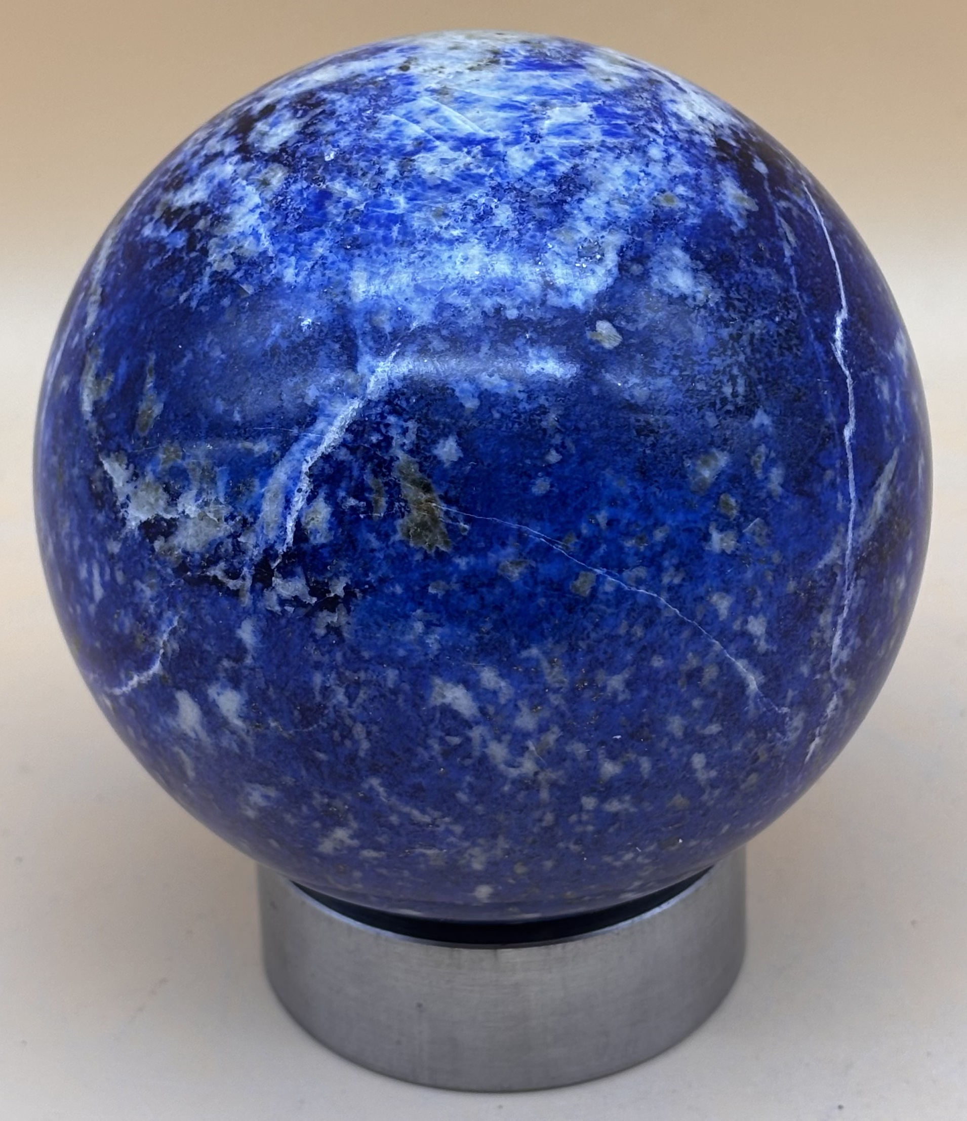 Deep Blue mit einer Polkappe aus Eis, so wünscht sich ein Astronaut den Planeten seiner Träume ,wenn er durchs All zu schweben vermag. Diese steinerne Lapislazuli Kugen erfüllt die Optik im handlich Kleinen. Oberfläche poliert, Hergestellt in Bayern