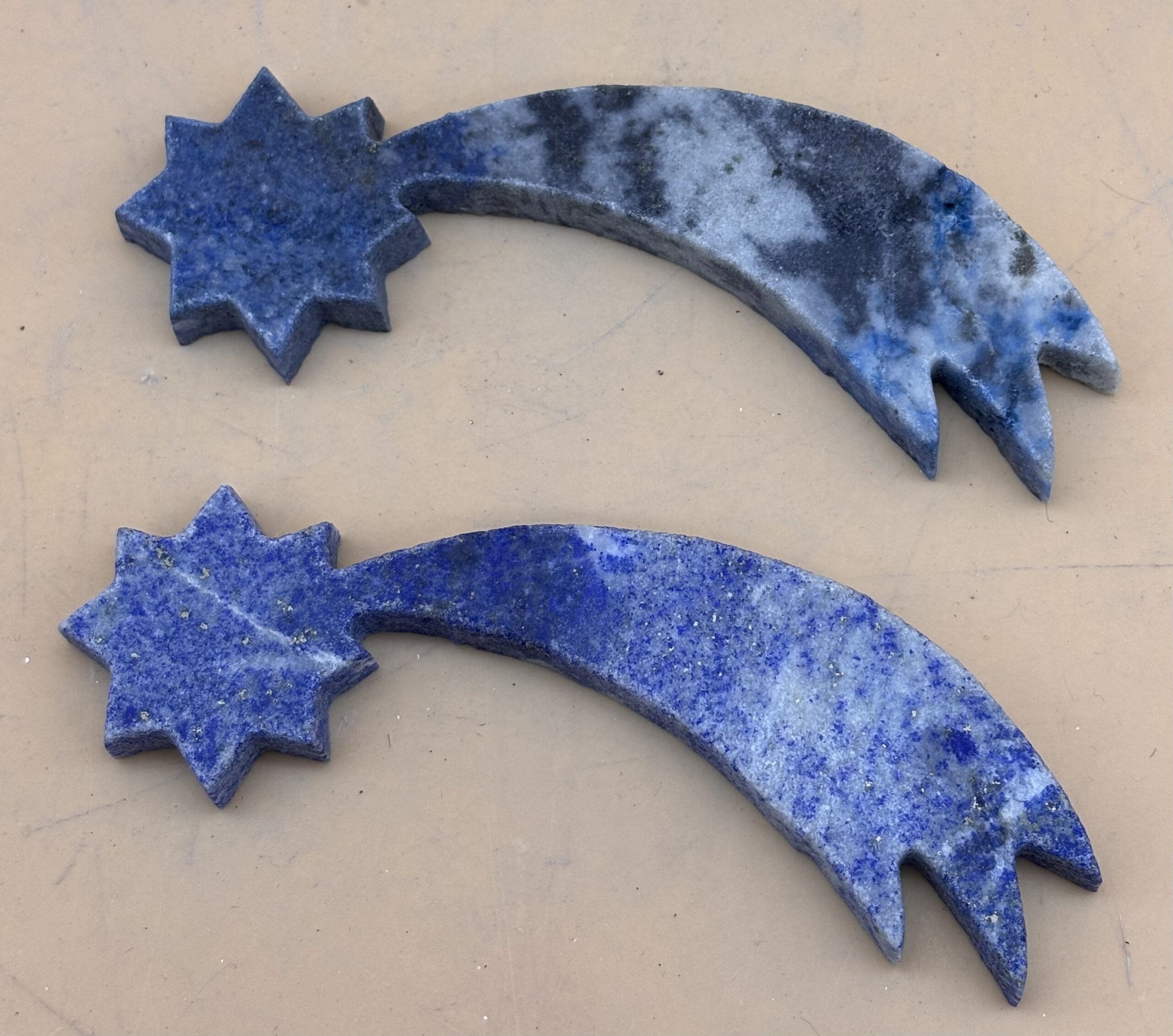 aus Afghanischem Lapislazuli hergestellte Sterne von Betlehem, Oberfläche poliert, zwei Stück, mit Wasserstrahl geschnitten, Hergestellt in Bad Wörishofen
