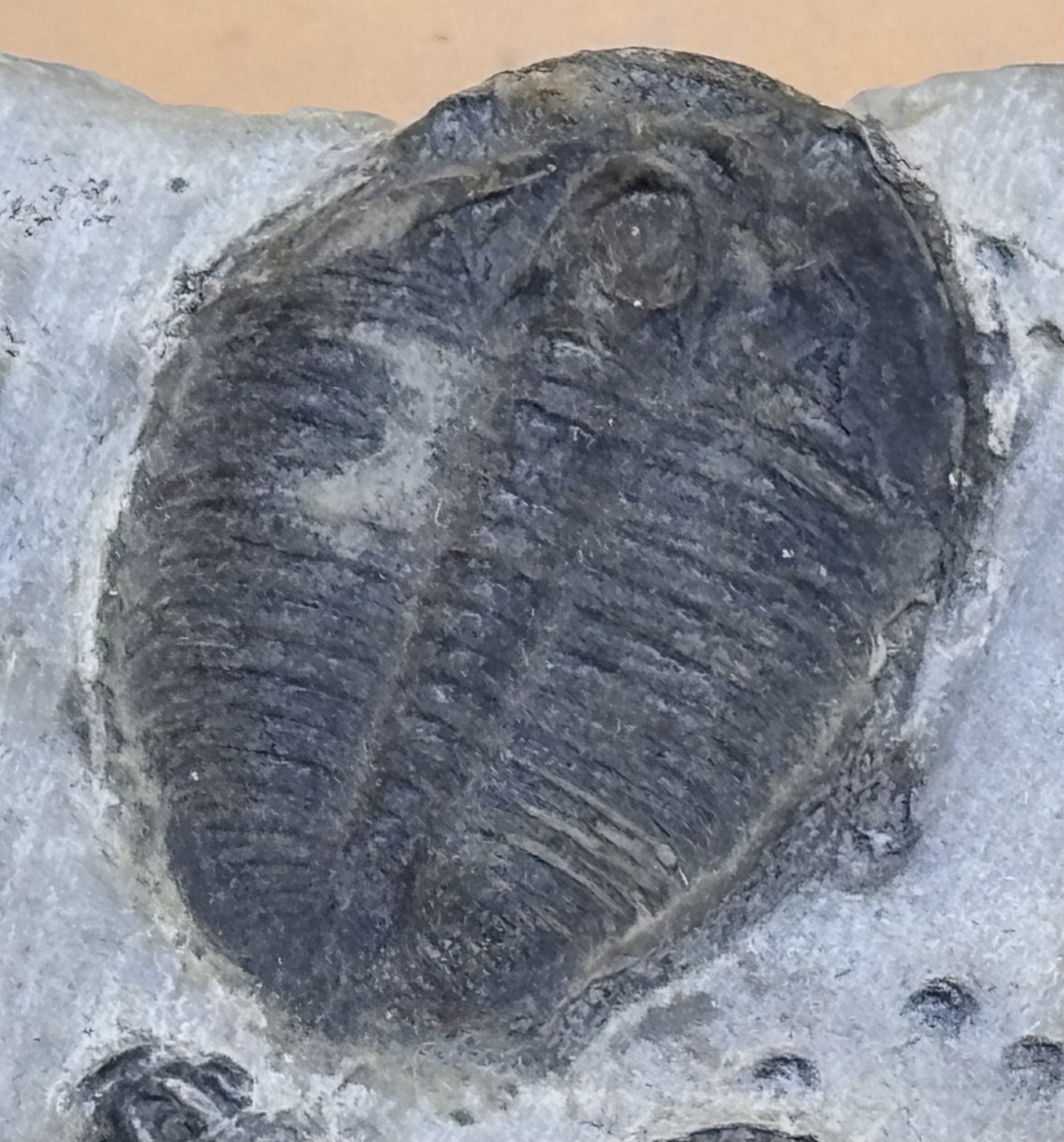 kleiner Trilobit aus dem Kambrium ( 520 - 250 Mio. Jahre ) auf Schiefer. Fundort Süd England