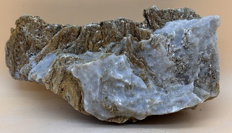 Die Brücke in Binn über die Binna hat etwas Magisches, eine Brücke die seit Jahrhunderten der Witterung des Gebirges in diesem schmalen Tal trotzt, sowie die Bäume des umgebenden Bergwaldes mit ihren weitläufigem Wurzelwerk. Schmelzwasser der umliegenden Gletscher die tobend durchs Tal fließen und all jene großen kantigen Felsen am Ursprung mit sich reißen, bis sie auf ihrem Weg im Bachbett an der Brücke in Binn zu runden weichen Formen modelliert worden sind, das ist Inspiration. Walliser Goldmarmor, Hessonit, Serpentin, Steinharz, 2024, Peter Fraefel Bildhauer