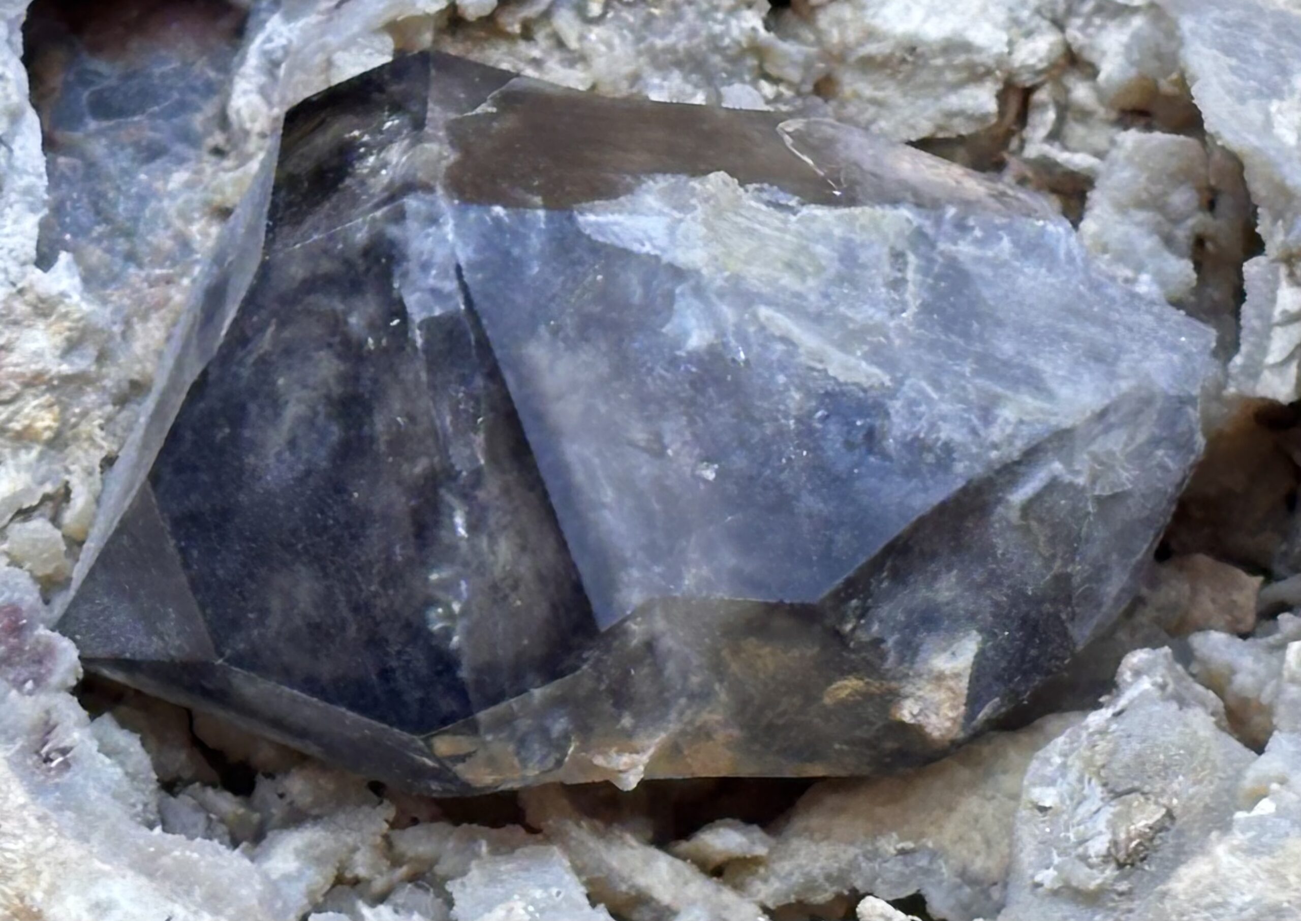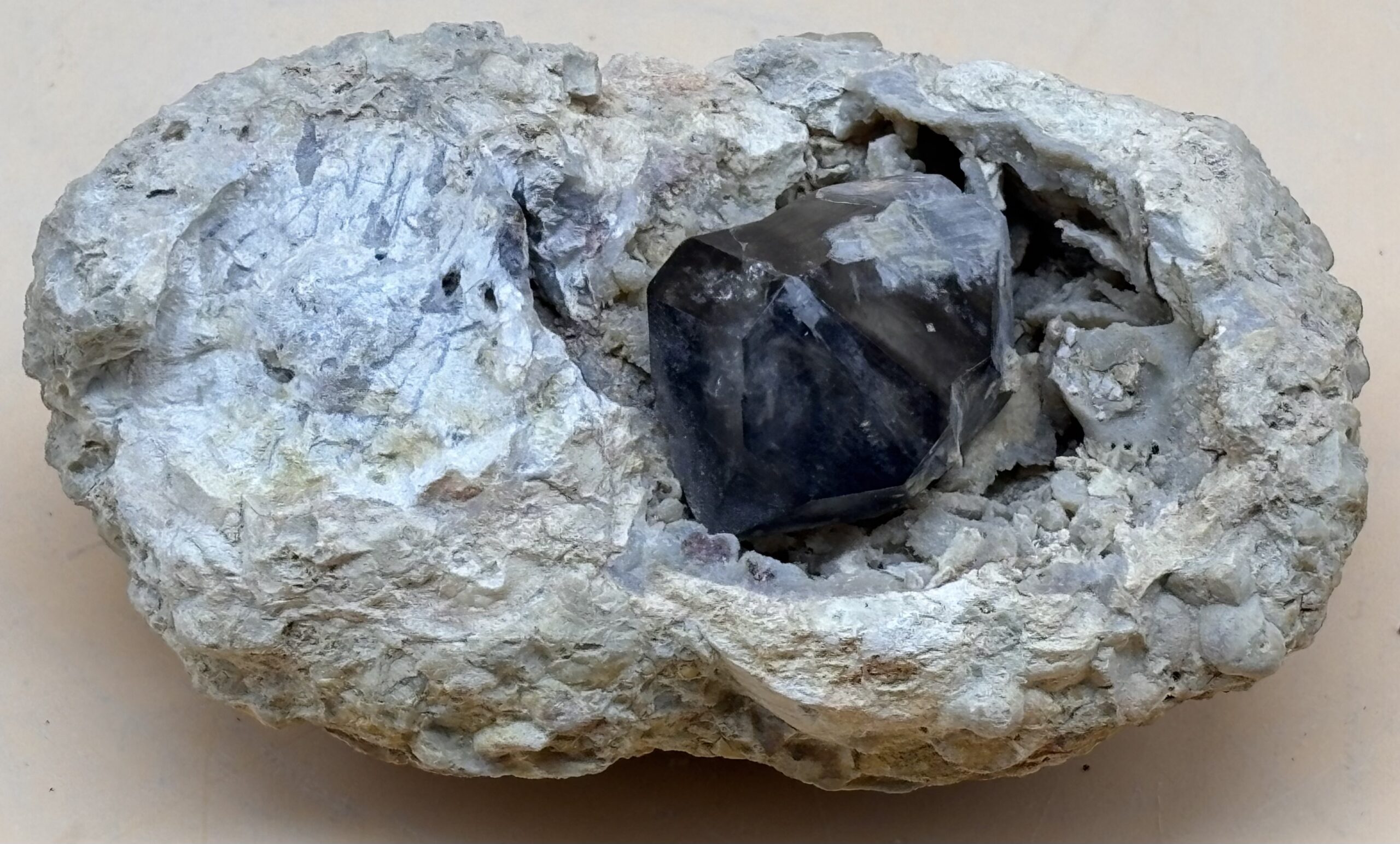 kleiner Zepter Rauchquarz in Rhyolit Druse, aus alter Sammlung, Fundort unbekannt